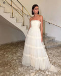 A-Line Long Wedding Party Dresses for Women Ruched Strapless Elegant Brides Party Gowns Evening Dresses Prom Gowns Ivory