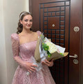 A Line Pink Shiny Short Wedding Dresses Long Sleeves Bridals Gowns Sequined Midi Bride Party Dresses Elegant Evening Dress