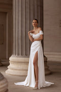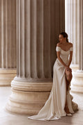Simple Soft Satin Wedding Dress Modern Mermaid Gown Satin Princess Bow Court Train Vestido De Novia Dress Satin