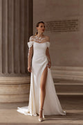Simple Soft Satin Wedding Dress Modern Mermaid Gown Satin Princess Bow Court Train Vestido De Novia Dress