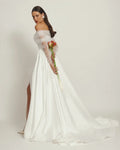 Detachable A-Line Skirt Train with Side Slit Wedding Dress Vestido De Novia Court Train Dress Satin Bow Bridal Gown Skirt Dress Satin