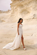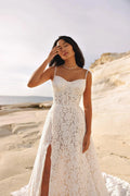 Beautiful Spaghetti Straps Wedding Dress with Lace Embellishments and a Sophisticated Slit Perfect for Brides Dresses