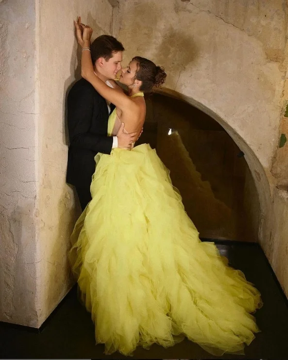 Light Yellow Prom Dresses Halter Neck Tulle Ball Gown فساتين السهرة Elegant Sleeveless Floor-Length vestidos verano moda