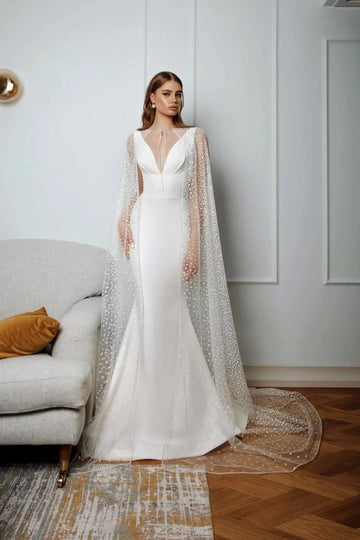 Minimalist Mermaid Bridal Dress with Straps and V-Neckline for a Sleek and Elegant Wedding Look