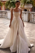 Romantic Sequined Wedding Dresses for Women Slit Sleeveless Pleat Engagement Party Chapel Train Bridal Gown Customised Satin