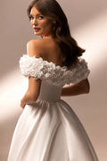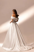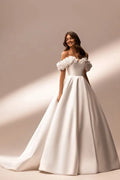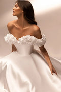 Wedding Dress Satin Off-the-shoulder A-Line Short Sleeve Floor-Length Elegant Exquisite Morden style Luxury