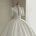 Elegante cuello en V satén con cuentas y mangas Vestido De baile vestidos De novia princesa corte tren vestidos De novia De talla grande Vestido De novia