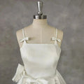 Vestido de fiesta de boda corto de satén con cuello cuadrado, minivestido de novia largo con cremallera en la espalda y lazo, hecho a medida
