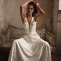 Vestidos de novia blancos de corte A, cuello halter, sin mangas, sin espalda, formales, para boda, baile de graduación, personalizados