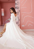 Vestido De Novia De satén elegante, ilusión Sexy, cuello en V, manga larga, con cordones en la espalda, bata De tren, Vestidos De Novia personalizados