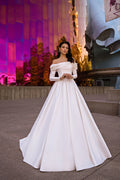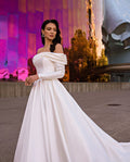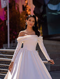 Vestido de novia moderno de satén con hombros descubiertos, corte en A, manga larga, elegante, personalizado