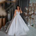 Vestidos de novia de talla grande para mujer, sin tirantes, corte en A, sin mangas, Apliques de encaje, Vestido de novia, Vestido de cola de barrido, hecho a medida