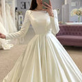Vestidos de novia de princesa, una línea, cuello barco, vestidos de novia de manga larga, elegantes vestidos de fiesta de boda de satén con botones románticos