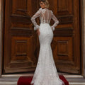 Vestidos de novia de sirena de encaje sexys, espalda transparente, mangas largas, vestidos de novia bohemios, apliques con cuello en V, vestido de novia