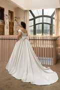 Vestidos de novia sencillos de talla grande, cuello en V, hombros descubiertos, satén, corte en A, con cordones, tren de barrido, bata Mariee