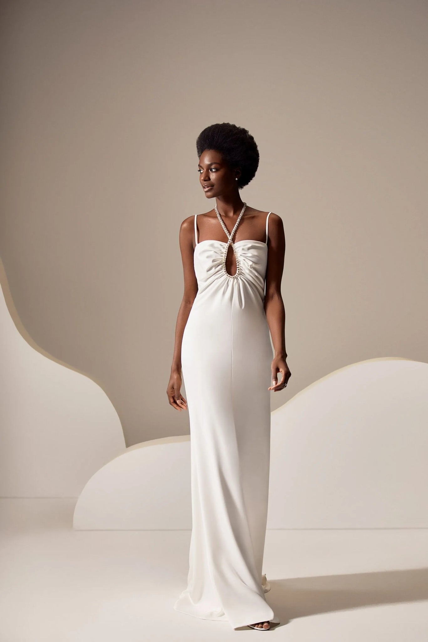 Silky Delicate Wedding Dress with Open Back and Beaded Spaghetti Straps Bow Satin Bridal Gown Modern Court Train Princess Vestido De Novia Mermaid Satin
