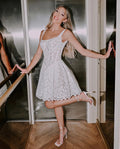 A-Line Lace Prom Dresses Lengan Pesta Pernikahan Pendek Lipatan Gaun Koktail Kerah Square untuk Wanita Pengantin Gaun Wanita