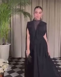 Black Chiffon Cape فستان سهرة Sexy V-neck A-line Prom Dress Sleeveless Party Dres Silk Chiffon Floor Lenght Evening Dress