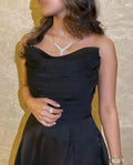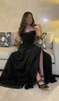 Black Strapless A-line Vestidos De Noche Sexy Side Split Prom Gown Silk Chiffon Prom Dress Sleeveless فساتين السهرة Black