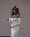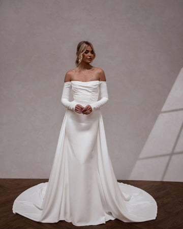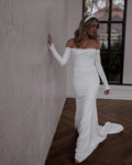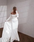 Booma Generous Mermaid Wedding Dresses for Women Boat Neck Sweep Train Simple Long Bridals Dress vestidos de novia