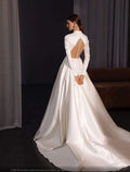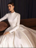 Gaun pengantin boho satin gaun pengantin leher tinggi lengan panjang muslim gaun pesta pernikahan arab saudi