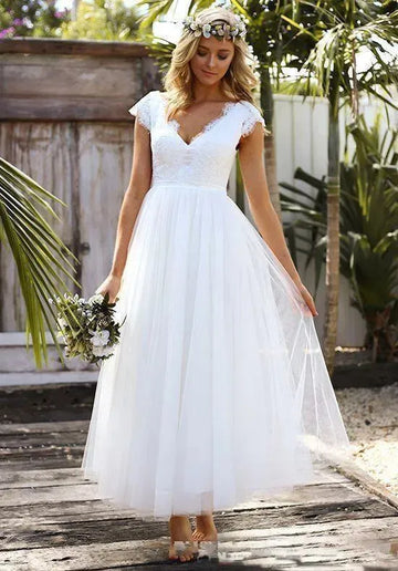 Gaun pengantin lengan bohemian v leher plus ukuran renda a-lace tulle beach bride gaun vestido de noiva
