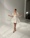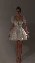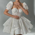 Gaun pengantin manik -manik berpayet pendek berpuze lengan putri gaun pesta sweetheart gaun wanita mewah elegan