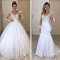 Gaun Pengantin Mermaid Lace 2 in 1 Gaun Pengantin Lengan Panjang Detachable Train Puffy Tulle Appliques Vestido de Novia