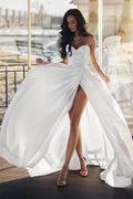 Gaun pengantin pantai sederhana plus ukuran seksi kekasih lengan baju celah gaun pengantin vestido de noiva mariage disesuaikan
