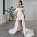 Gaun pengantin pendek dari gaun pengantin bahu yang dapat dilepas kereta custom boho boho tinggi/rendah untuk wanita menyesuaikan dengan ukuran
