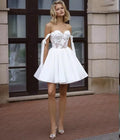 Gaun Pengantin Pendek Elegan A-Line Lace Sweetheart Off The Shoulder Satin Buka Punggung Gaun Pengantin Di Atas Lutut Vestidos de Noiva