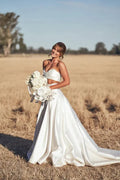 Gaun pengantin putri duyung yang elegan 2 buah sweetheart buka lengan bagian belakang satin satin gaun pengantin seksi menyapu kereta api vestidos de noiva