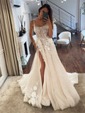 Gaun Pengantin Renda 3d Seksi A Spaghetti Straps Square Neck Bride Bride Dress Elegant Appliqued Wedding Gowns