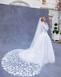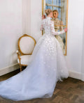 Gaun pengantin renda leher tinggi lengan panjang a-line pengantin gaun boho putri gaun pengantin ukuran kustom vestidos de novia