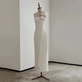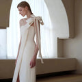 Gaun pengantin satin putih mewah untuk pengantin elegan seksi celah seksi prom malam pesta koktail pesta wanita gaun musim panas