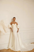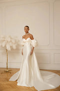 Gaun pengantin sederhana yang elegan satin selubung putri duyung gaun pengantin seksi strapless lengan jubah tanpa lengan vestidos de novia