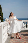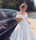 Grosir gaun pengantin sederhana satin dari bahu panjang gaun pengantin putih untuk wanita jubah pantai musim panas de maire