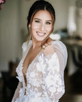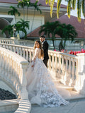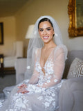 L Neck A Line Wedding Dress Appliques Brides Dress Tulle Lengan Panjang Gaun Pengadilan Pernikahan Kereta Gaun Pengantin
