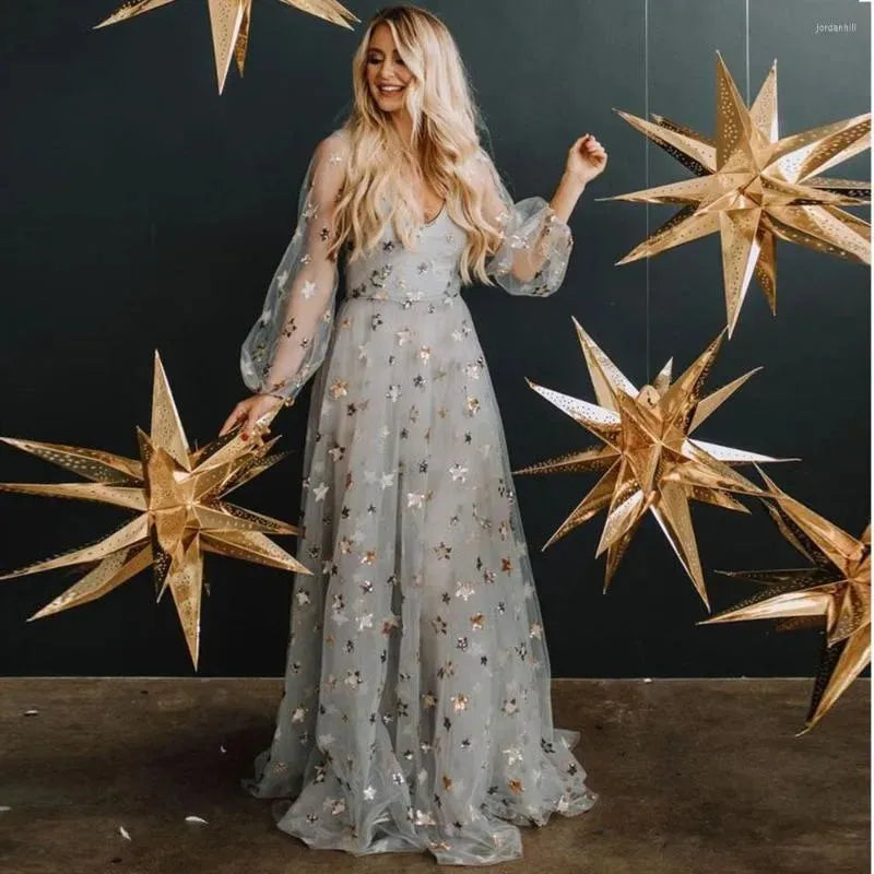 Lace Embroidery A-line Tulle Prom Dress Puff Sleeve V-neck فستان حفلات الزفاف Elegant Plus Size Wedding Dress