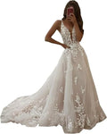 Lorie Blush Pink Lace Gaun Pengantin Elegan Appliques V-Neck Berpotongan Rendah A-Line Bride Gowns Princess Spaghetti Tali Gaun Pengantin Gaun Pengantin