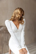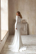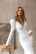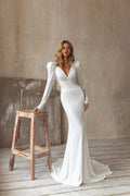 Lovedress Deep V-Neck Wedding Dresses Muslim Lengan Panjang Lace Appliques Elegan Putri Duyung Gaun Pengantin Spandex Tombol Sapuan Trian