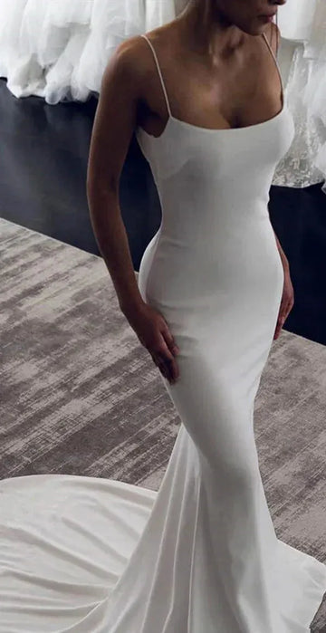 Lovedress Elegant Spaghetti Straps Daun Pernikahan Putri Duyung Untuk Pengantin Sederhana Terbuka Kembali Gaun Pengantin Seksi Jubah de Mariee
