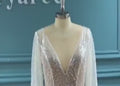 Manik-manik yang memukau berpayet panjang gaun pengantin v-neck pesta formal gaun malam tumbuh jubah de marriee