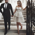 Off the Shoulder Short Wedding Dress Champagne Appliqued Lace Bride Dresses Lutut Panjang Gaun Pengantin Backless Kustom