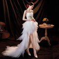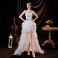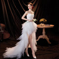 Organza putih hi gaun pengantin rendah pantai gaun pengantin appliques renda di belakang bagian depan pendek panjang punggung putri gaun bulu