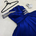 Sexy One Sleeve A-line فساتين مناسبة رسمية Sapphire Blue Thick Satin Prom Dress Sequins On Chest Vestidos De Noche