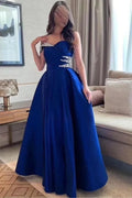 Sexy One Sleeve A-line فساتين مناسبة رسمية Sapphire Blue Thick Satin Prom Dress Sequins On Chest Vestidos De Noche Blue