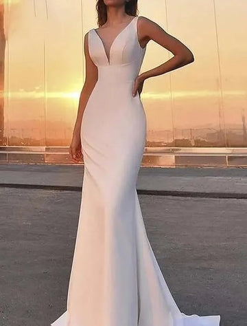 Yunshang Simple Mermaid Wedding Dresses Wanita Buka Kembali V-Neck Spaghetti Tali Satin Gaun Pengantin Gaun Pengantin Kereta Vestidos de Novia