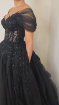 Black Ball Gown Tulle Prom Dress Elegant Lace Embroidery فساتين السهرة Sexy V-neck Off Shoulder Evening Dress as pic