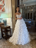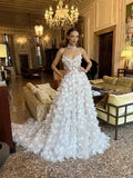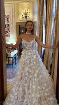 Elegant A-Line Long Wedding Dresses V Neck Sleeves Brides Gowns for Women Flowers Sweep Train Generous Bridals Dress